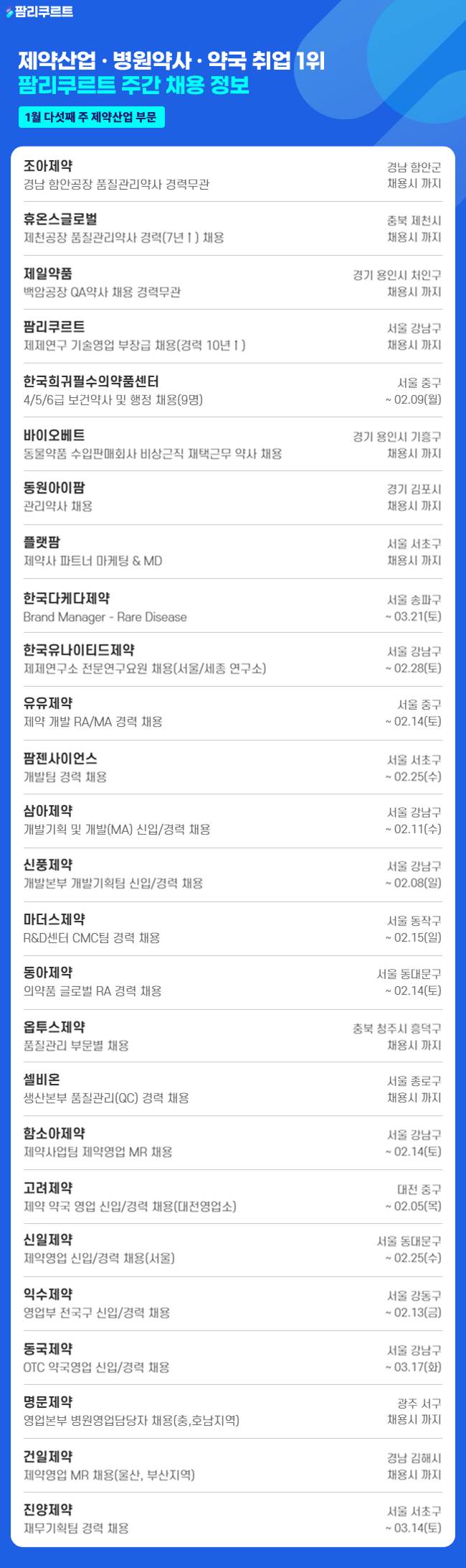 [팜리쿠르트] 조아제약·휴온스·제일약품 등 약사 채용