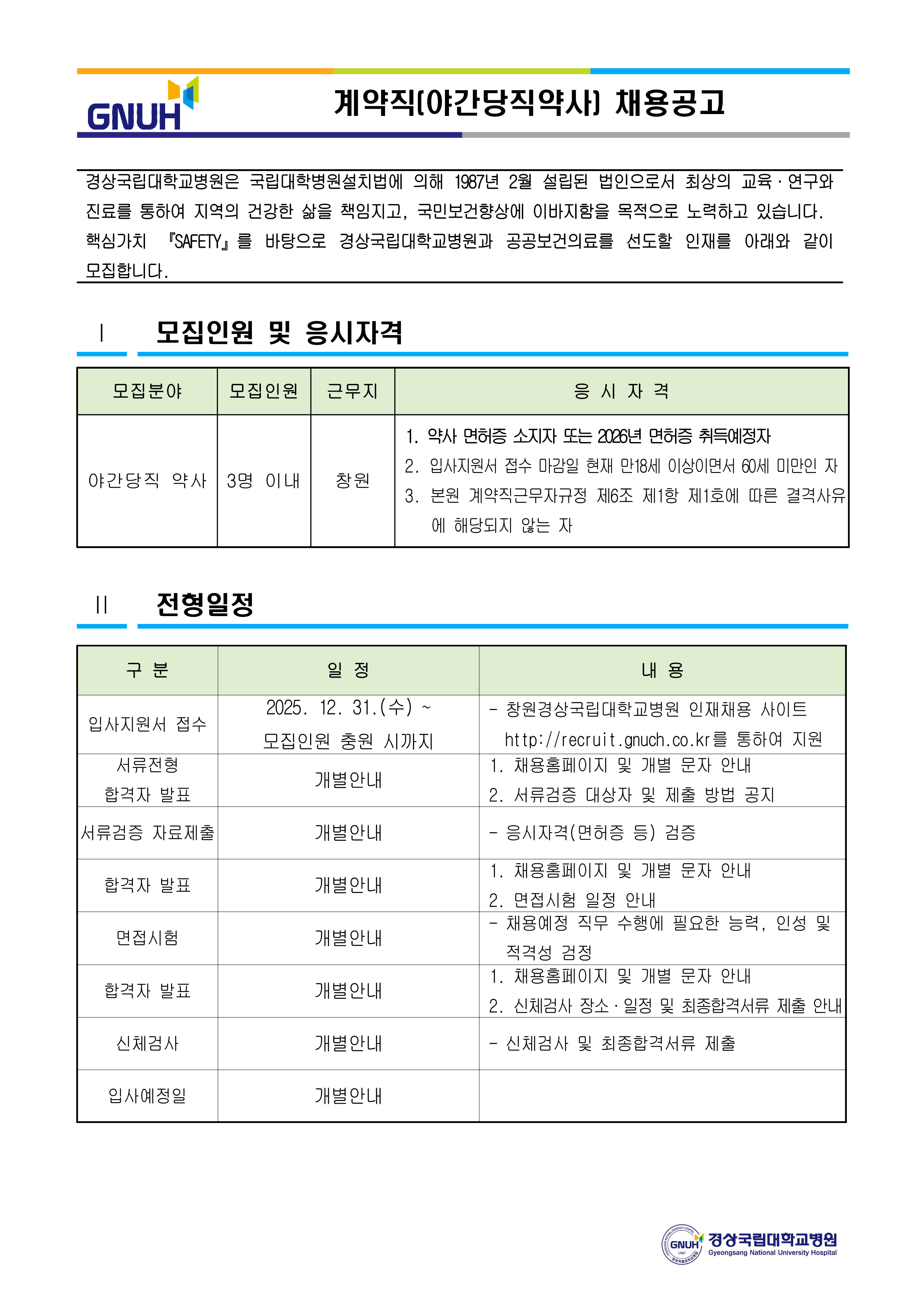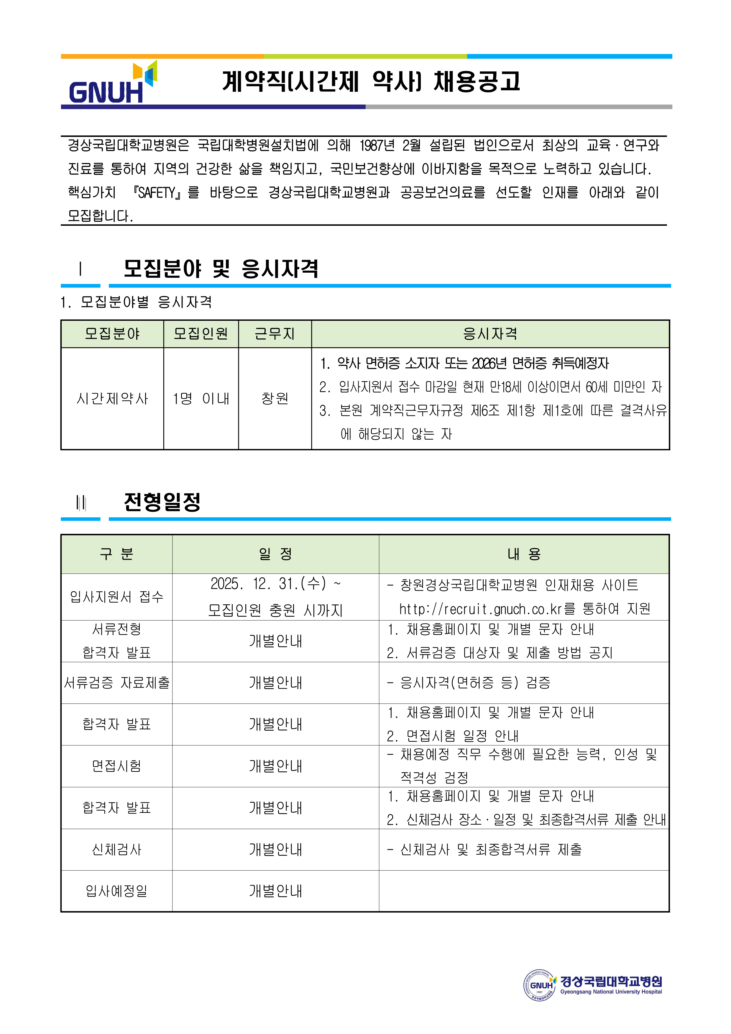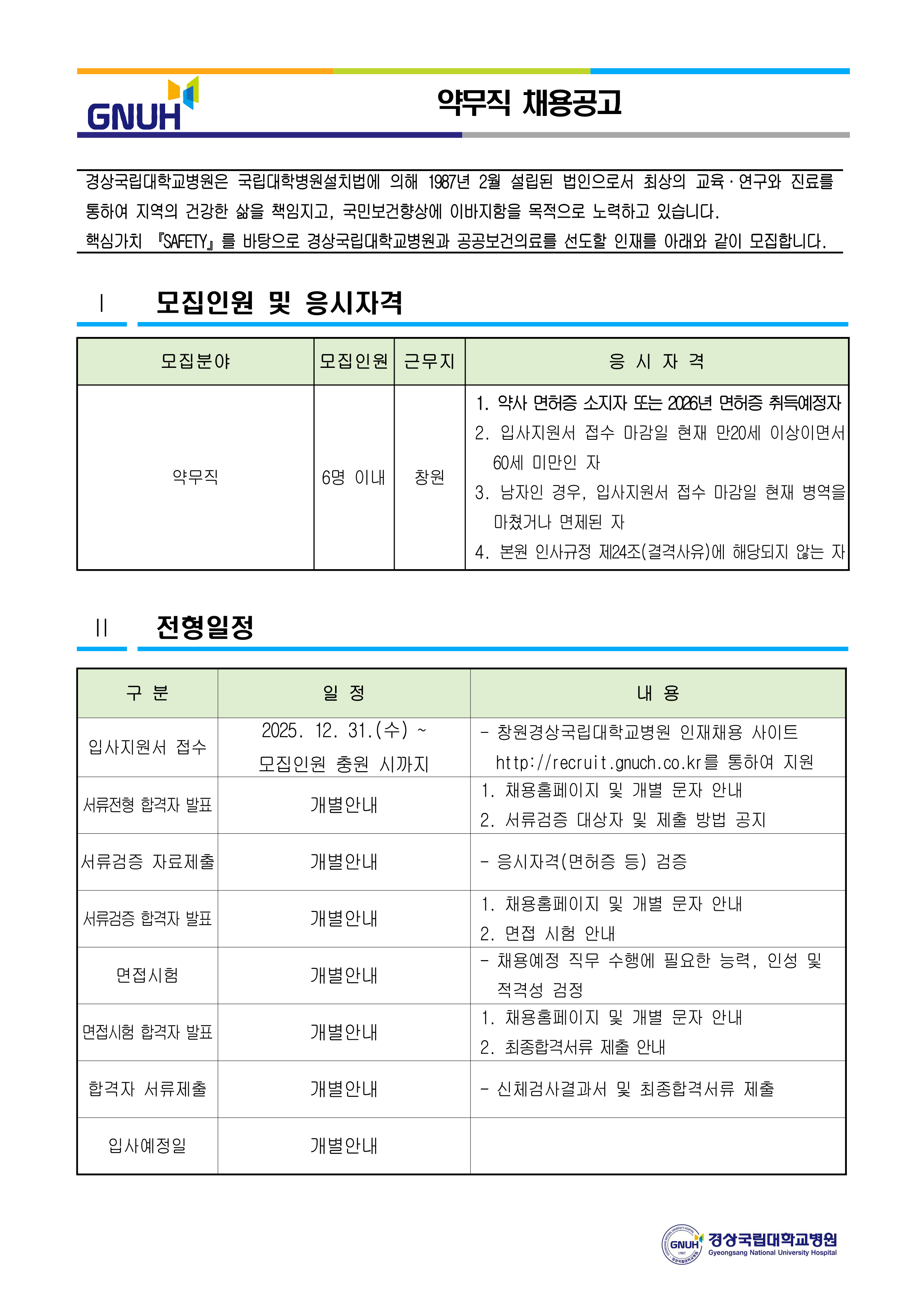 * 창원경상국립대학교병원에서 약사님들을 모집합니다.