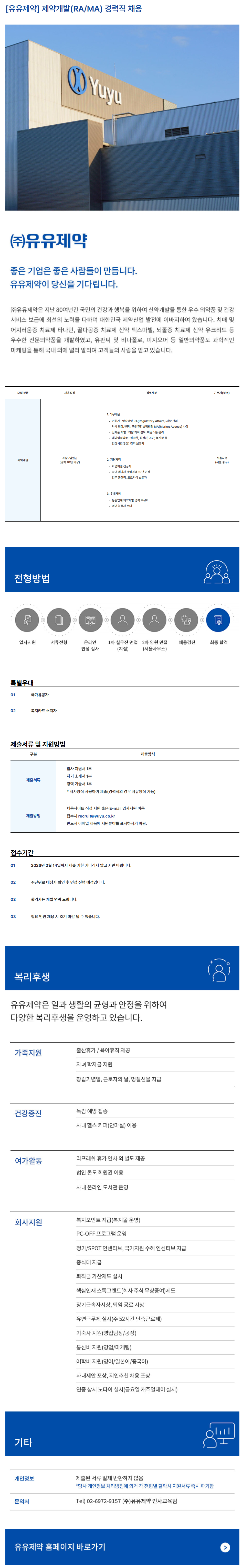 | 제약·산업 > 연구개발 | 제약 개발 RA/MA 경력 채용 |
