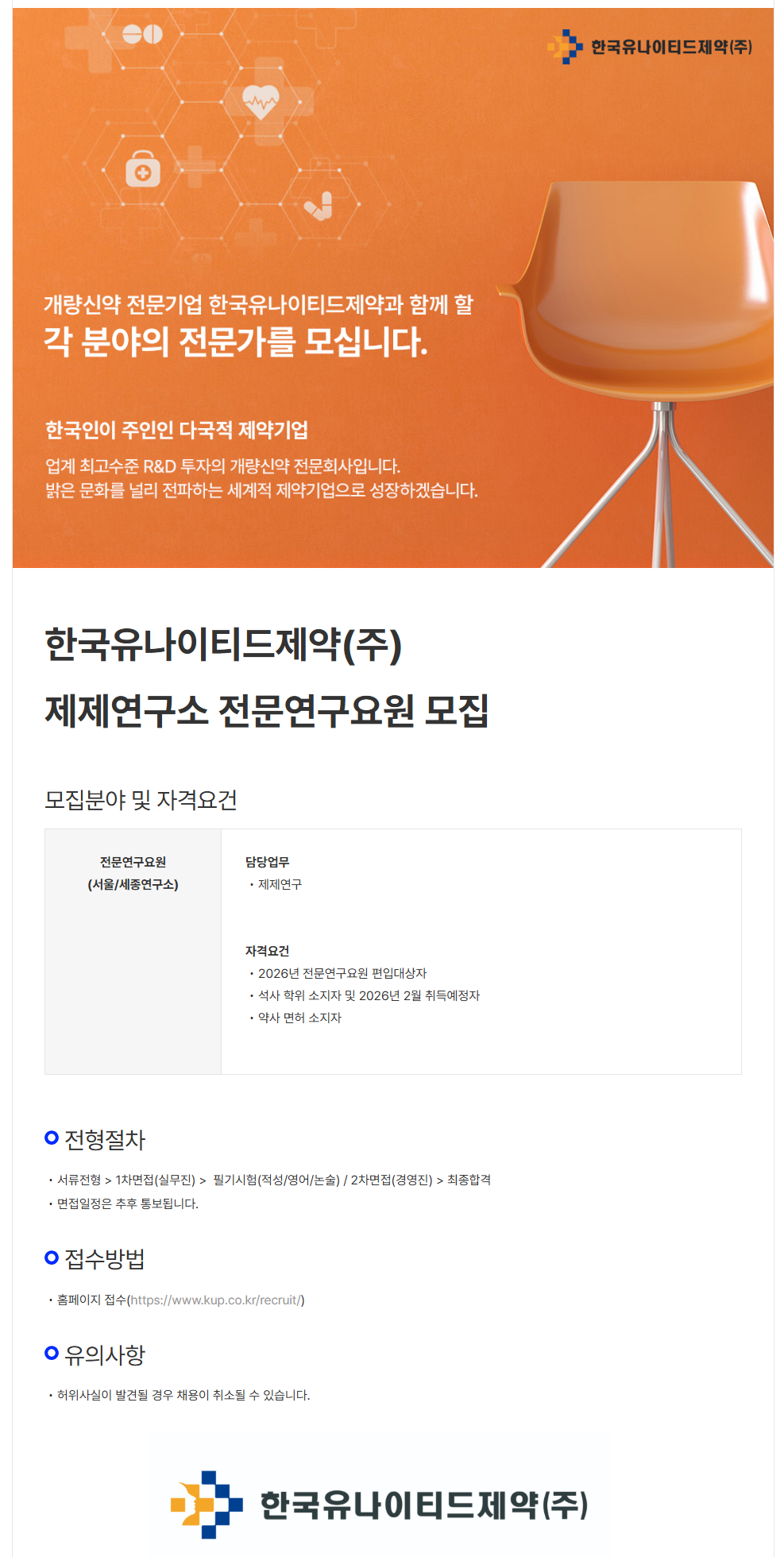 | 제약·산업 > 연구개발 | 제제연구소 전문연구요원 채용(서울/세종 연구소) |