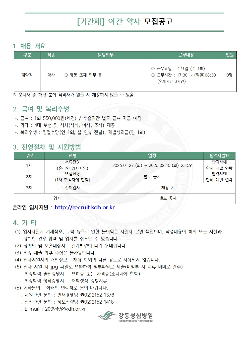 | 주소 | 서울 강동구 성안로 150 (길동, 강동성심병원) 약제팀 | ||