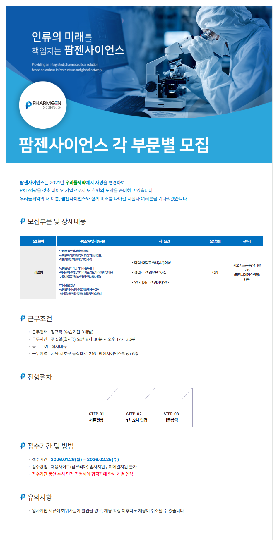 | 제약·산업 > 연구개발 | 개발팀 경력 채용 |