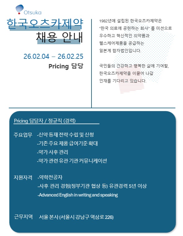| 제약·산업 > 임상허가 | Pricing(약가 담당) |