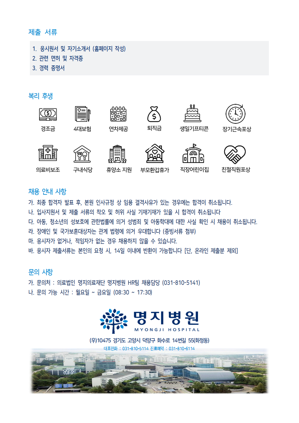 | · 제출서류 | 1. 응시원서 및 자기소개서 (홈페이지 작성) 2. 관련 면허 및 자격증 3. 경력 증명서 |