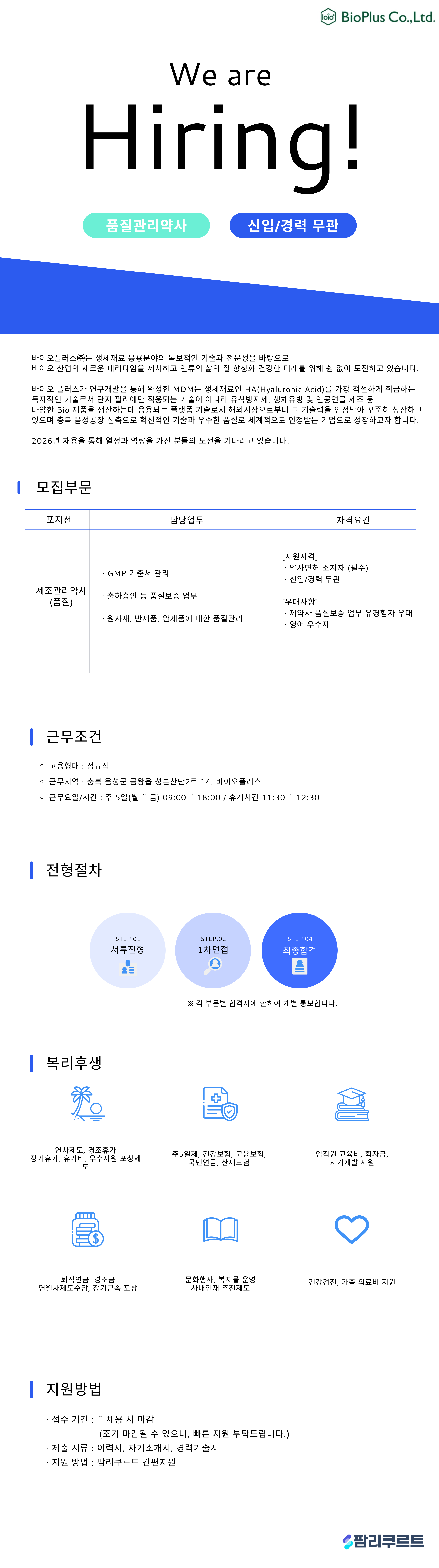 | 제약·산업 > 생산품질 | 음성공장 품질관리약사 채용 신입/경력 |