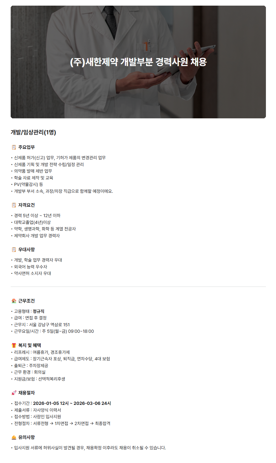 | 제약·산업 > 임상허가 | 개발본부 경력 채용 |