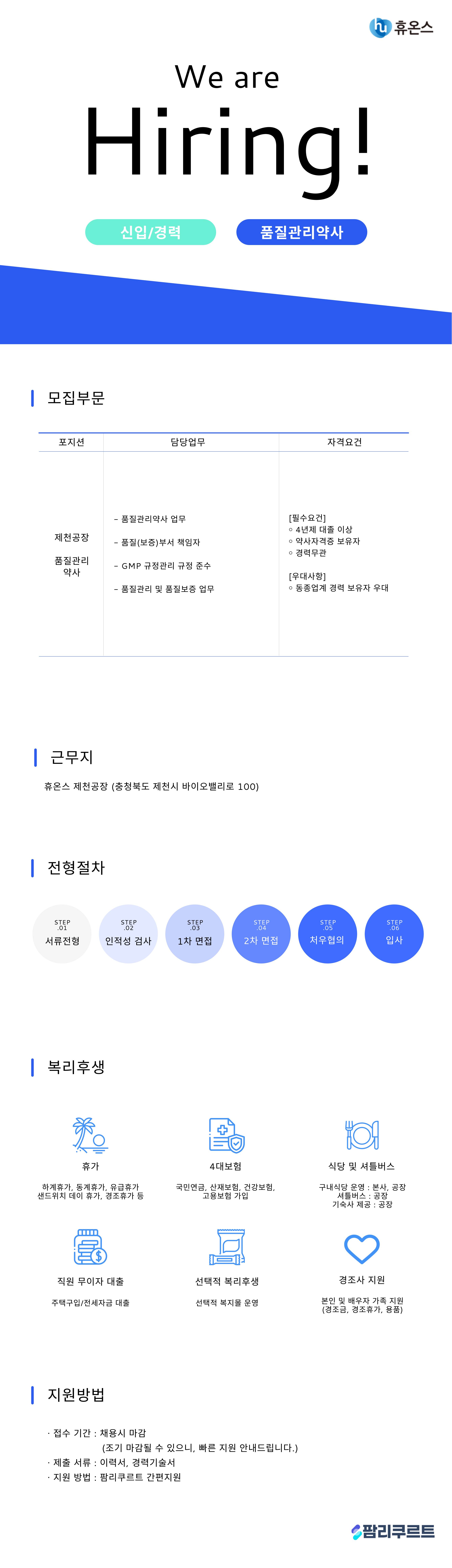| 제약·산업 > 생산품질 | 제천공장 품질관리약사 신입/경력 ASAP |